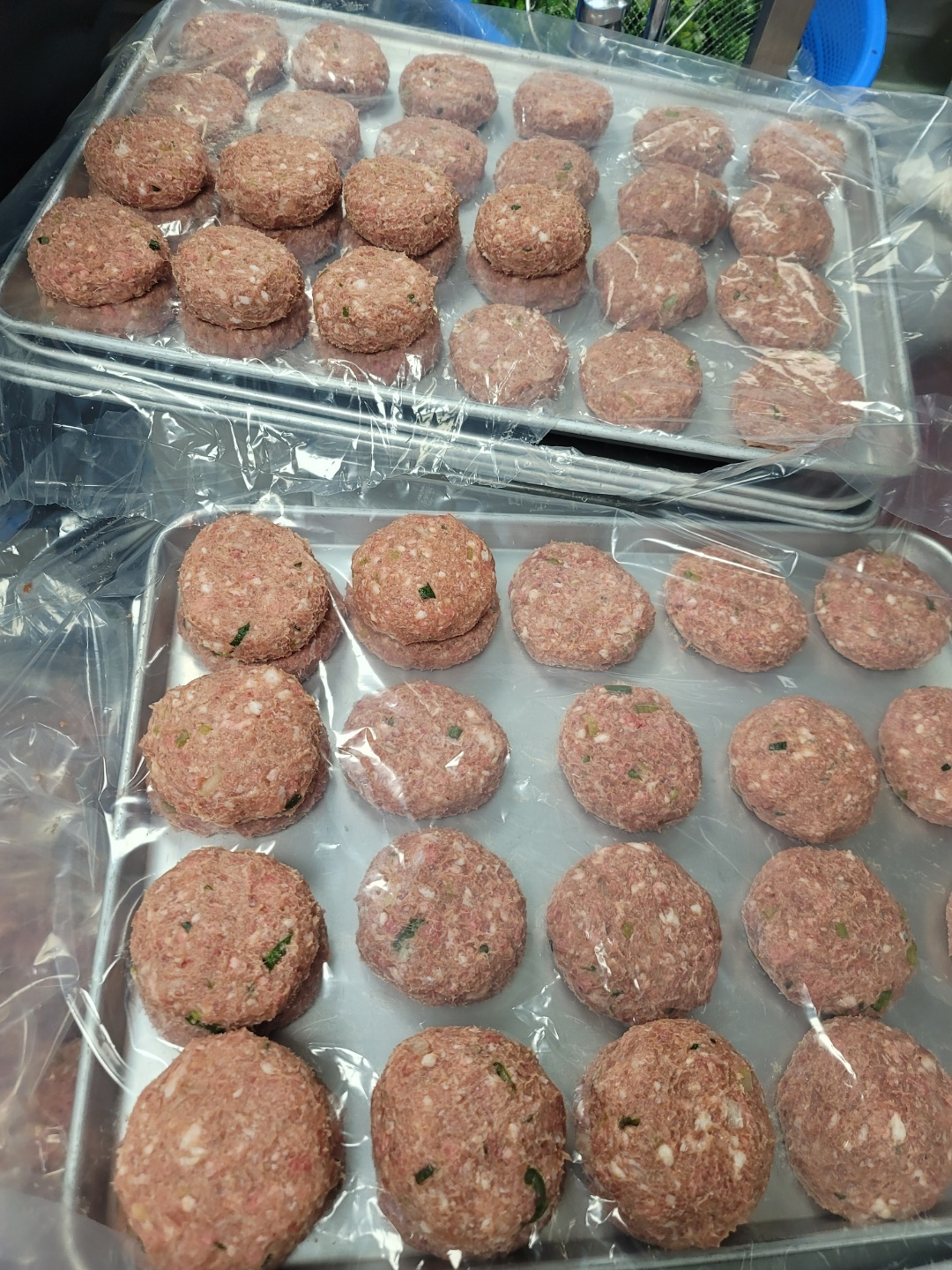 소우돈, 소삼겹양지, 소알목심, 돈민찌를 섞었고 고소한 맛을 위해 돈지방민찌를 사용했습니다.